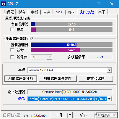 二,实测,几乎跟默频酷睿I9-9900K一样的性能: